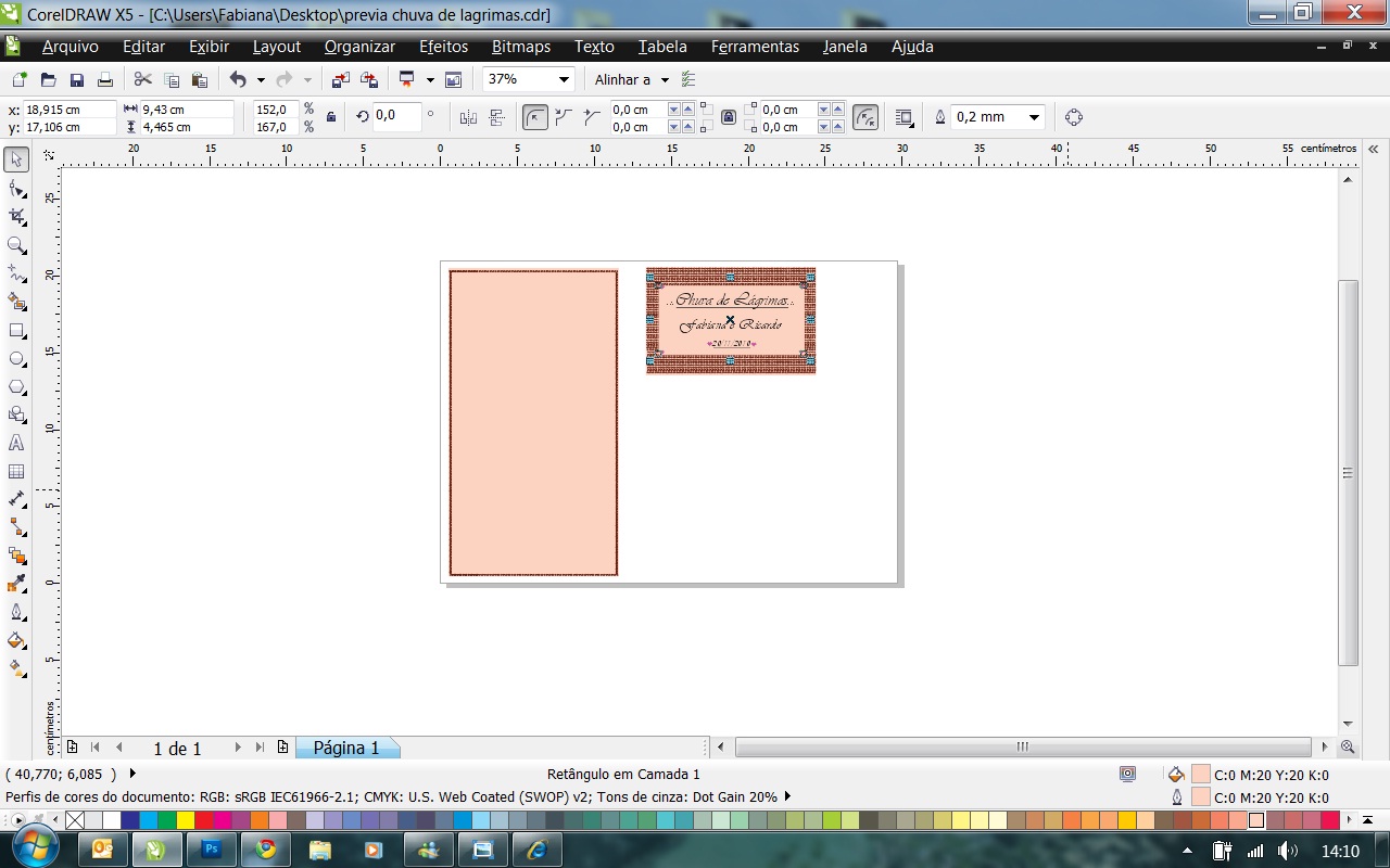 Bom primeiro peguei as medidas através de um pedaço de papel higiênico. Abri o corel e comecei a arte.